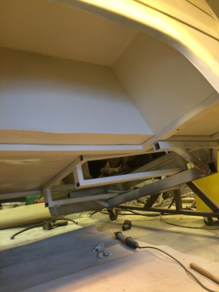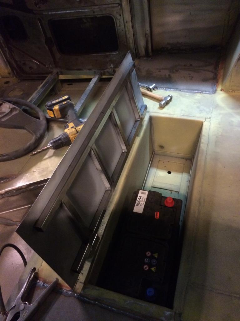 Akuille tuli aikaisemmin tehtyä paikka takamatkustajien jalkatilaan. Nyt tuli nakerreltua siihen kansi päälle. Luulisi kestävän kävellä päällä. Tuohon vielä tulee säädettävät kiinnikkeet akuille. Eilen tuli vielä sitten naputeltua toista metriä katonrajaa uusiksi. Nyt olisi persaatteessa kaikki valmista nostaa koppa rungon päälle takaisin. Kaippa se taas tästä pikkuhiljaa etenee... |