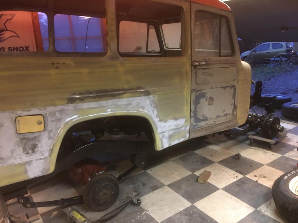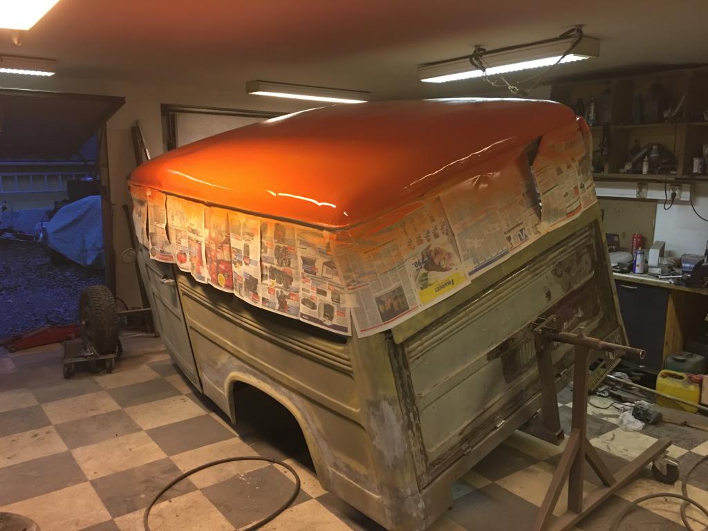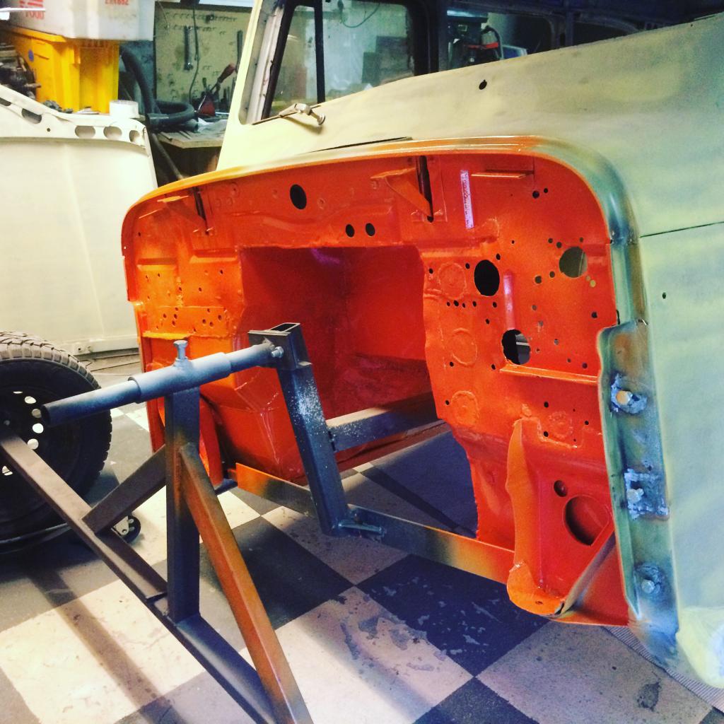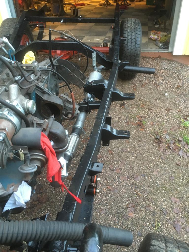 Runkoon iskarikiinnike tehostajan puollelle. Ei muuten ollut tallilla kuin happoista tavaraa niin siitä tuli tehtyä. Maalaushommia rungon osalta olis edessä eli se tiesi taas vähän nostelujumppaa. Akselit työnnetty ulos odottelemaan maalausvimman loppumista. Epoksia reilusti pintaan. Tämän päälle sitten vielä polyuretaanit. Vielä pitää pyöräyttää runko toisinpäin ja maalailla loppuun. Sitten voisikin istuttaa taas moottorin ja akselit paikalleen. Kopan suhteen alkaakin peltityöt olla valmiit. Pohja olisi tarkoitus maalata niin voi senkin nostaa rungon päälle. Kylkiin en nyt näillänäkymin ole laittamassa pakkelia, eli jätetään vähän rajummiksi. Maaliksikin olisi kai tulossa mattapintainen... |