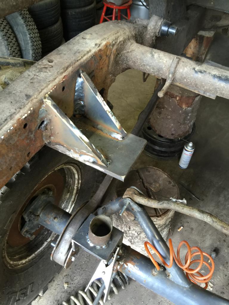 Kyllähän se sinne tuntus mahtuvan vaikka akselin yläpuolelle tuleekin ahdasta: jouset, jakarit, panhard