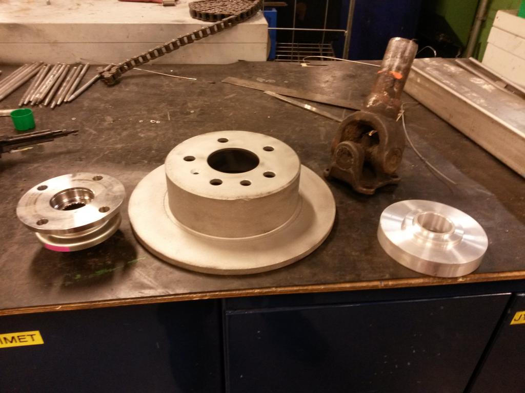 Kardaanikäsijarrua rupesin tekemään. Levyksi valikoitu A omegan takajarrulevy, siinä on hyvin tilaa kardaanille, koska siinä on alunperin rumpujarru käsijarruna. Satulaksi tulee A omegan takasatula