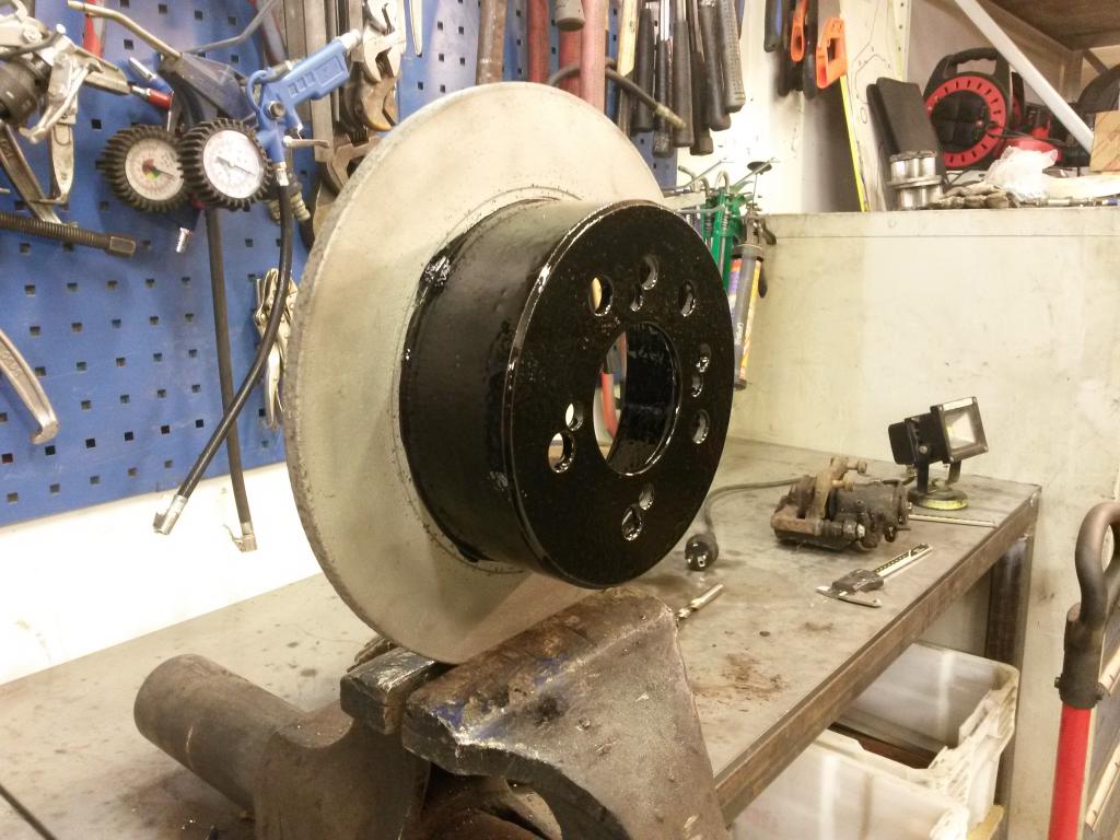 Sorvasin pienen käikäleen jotta sain noi yhdistettyä. Koriin joutuu tekee kolon, koska jarru levy haluaa korin sisäpuolelle ![]() Lasikuulapuhalsin ton jarrulevyn ku oli ruosteessa Vola Sitten yhteen pultattuna