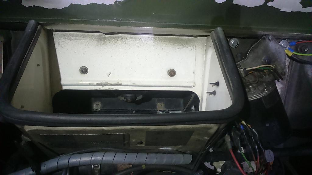 Ensimmäisessä kuvassa oikealla pyyhkijän moottori, vasemmalla näkyy puhaltimen moottorista osa. Poishan sitä ei saa tuota kautta tietenkään, mutta saa ainakin paikallistettua.