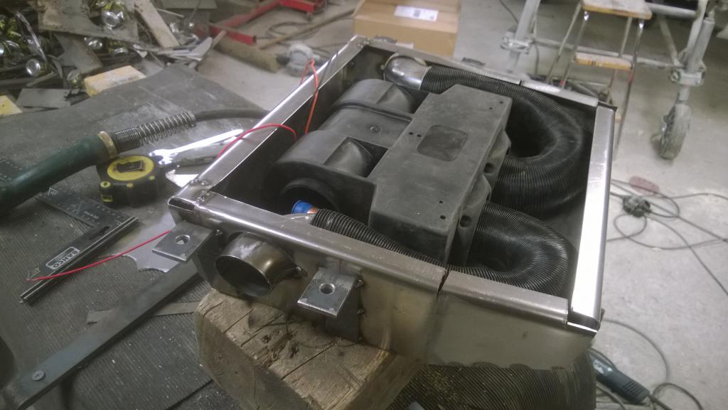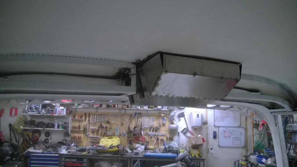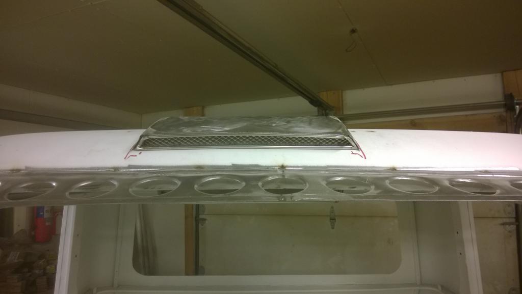 Pikasesti piti käydä tallissa puuhastelemassa pellistä tuota katon etuosan skuuppia lämppärin ilmanoton suojaksi. Joku tommonen