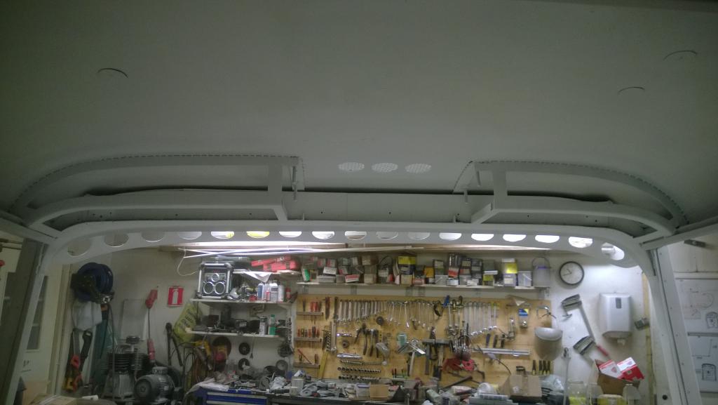 Illasta tuli hitsailtua lämppärin kiinnityspultit kattoon kunnolla kiinni ja samalla vahvistusrautojen hitsauksia vahvistelin myös. Periaatteessa nyt olis kopissa sisällä kaikki tehtynä pohjien tekoa varten. Samoten tuli hitsattua nuo ilmanpoiston mutkat kunnon saumalla kiinni ja askarreltua aukkoihin verkot. Huomenna jos sais hitsailtua tuon 'aurinkolipan' kunnolla kiinni niin pääsis sitten hiomaan hitsisaumat ja miettimään katon pohjien tekoa... |