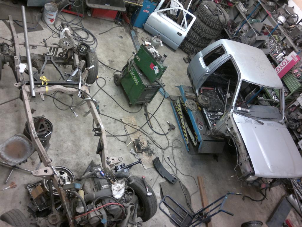 hiluxi projekti EVO-2Laitetaas tästäkin tekeleestä kuvia ja jonkinlainen projekti kertomus tänne niin on esillä näin julkisesti. tammikuun lopulla 2014 ,porvoosta löytyi aihio, offipalstan kautta sovittiin kaupat hintakin oli sopiva sillä kone oli rikki. samalla viikolla aloitin vanhan ja tämän uudenauton purkutyöt, sillä vanhasta tulisi "varmaksi" todettu tekniikka uuteen peliin uudemman runko oli hitsaamaton ja hyvässä kunnossa rungon purin irti ja vein hiekka puhallukseen helmikuun alussa tuli runko hiekka puhalluksesta koska en ollut määritelly rungon väriä oli maalattu lähes vaalean punaiseksi ![]() plasmalla irti turhat korvakkeet siististi sitten uusia kiinikkeitä jotka oli tehty cnc plasmalla helmikuun puolessavälissä etuakselia alle taakse rangen a-linkki sitten alkoi tekniikka paketin paikalleen laitto ensin pesu punainen paketti kytkinkopan suunnasta r151 loota+v6 adapteri+ln110jakis 23boorisella akselilla+dual-case adapteri+ln46 top shift jakis 23 boorisella akselilla. -siis 2 jakolaatikkoa peräkkäin mutta lootaan jotuu laitta tuon v6 adapterin. laatikon sovittelua kera koneen, lopulta kone+loota pakettia siirsin vielä 5 cm taaksepäin kori sisälle halliin ja nosto pystyyn (aiemmin oli jo sisältä massat raaputeltu koria irrottaessa, sisä massat olivat hieman jäässä joten ne lähtivät irti helposti) pohjaan paine pesua ja teräs harjaa ymm. sitten palkkihelmojen hitsausta löyty 3mm seinämällä 50x70 palkkia pohjan maalaus 2-komponentti epoksilla sisälle lattiaan väriä myös loota irti ja vanhaa kytkintä kasaamaan kuulemma tilattua heavy dyty kytkin ei tulekkaan kaarien tekoa katolle tuli muuten porattu reijät ja hitsattua saumat kiinni sieltä. hyvä tulee kun maalaa vielä. korin kulma vahvistukset samalla sitten sovitusta rungon päälle eletään jo maaliskuun loppua 2014 sinne se meni koppaa oli koitettu jo aiemmin samalla viikolla ja todettu että konetta+lootaa voi ottaa reilusti taakseppäin kardaani ja loota tunneli meni uusiksi loota nousi hieman ylöspäin. romikselta löyty kuparoitua alumiinia kanneksi sitten puskurin tekoon mallaillaan levikkeiden kanssa