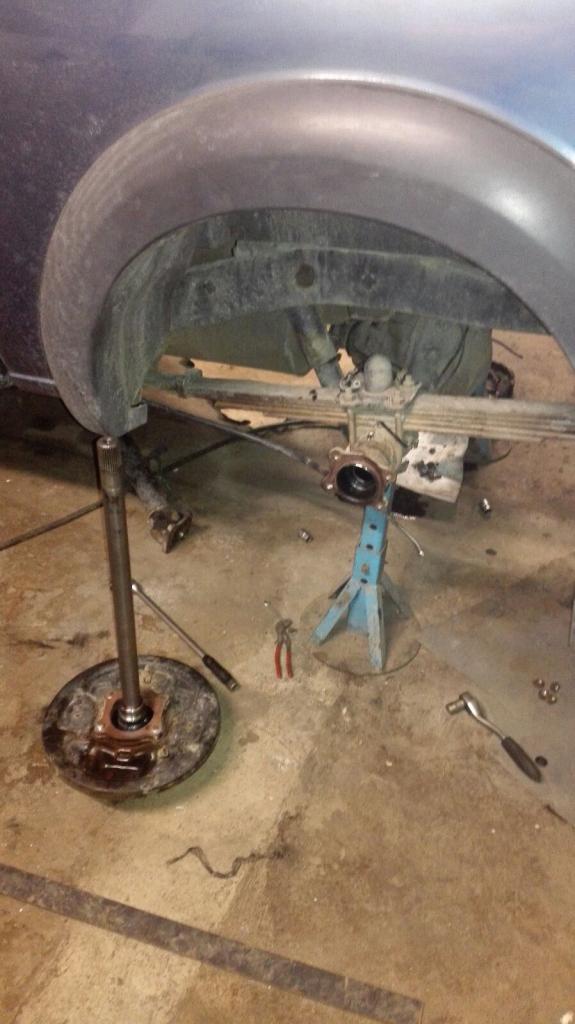 Hienosti meni laakerin vaihto. Voisin tänne selostaa tapahtuman eli perä pukkien päälle, renkaat pois ja peräöljyt valumaan.