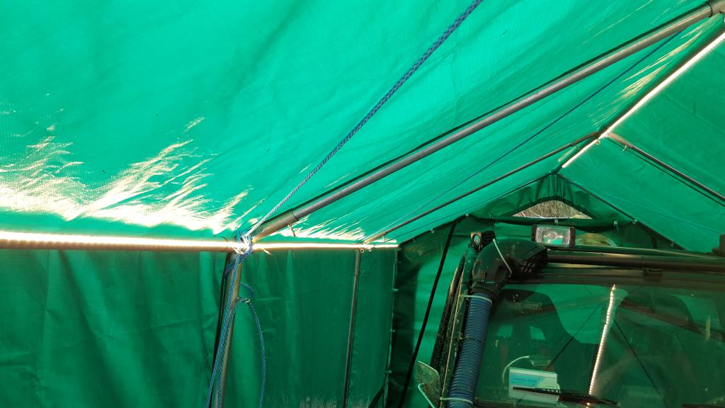 Sadepäivän kunniaksi tuli suikan katokseen laitettua 15 metriä aitoa Kiinalaista LED-nauhaa. Aika kivasti antaa yleisvaloa pimeyteen, vaikkei noi mitkään työvalot silleen olekaan.