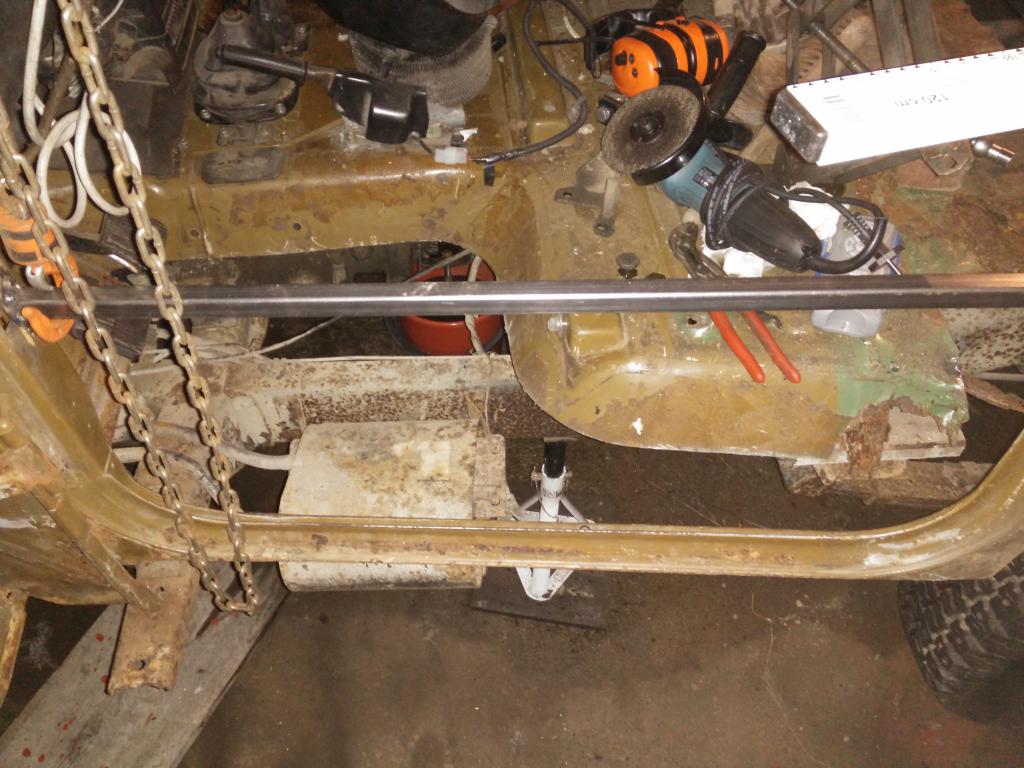 Huh nyt ollaan jo projektissa tässä päivässä. Pientä norjan kromia on löytynyt tuolta korin kiinnikkeistä ja tuon korkeutta on enään hankala mitata joten siihenkin olisi tarvis saada jonkinmoista lukemaa. Siinä samalla kun oli armoton fundeeraus että mitäs sitten niin tuli ohimennen napattua tankki pois. Saas nähdä miten löpösäiliö menee takaisin kun siinä vaiheessas on toivottavasti korin takaosa jo valmis. Pieniä yllätyksiä tuli tankin irroituksen jälkeen. Tankin yläpuolella menevä poikittais palkki oli aivan ehjän näköinen joten sitä ei ehkä tarvitse vaihtaa.