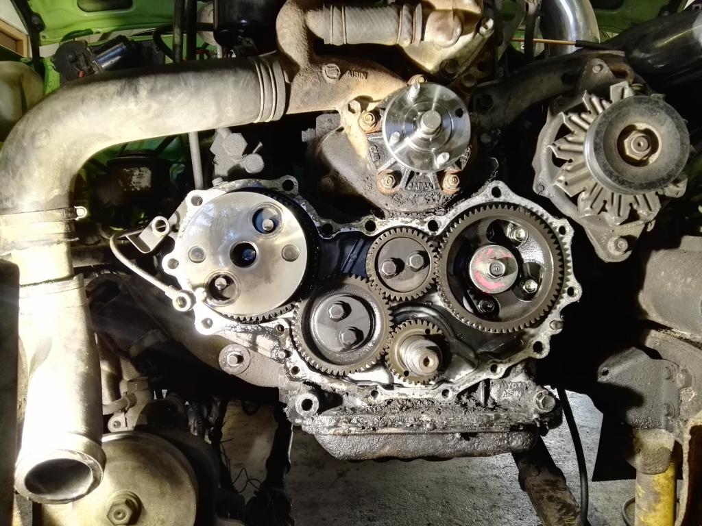 Jos syöttöpumppu on kiinnitetty pelkästään keulastaan tohon taustalevyyn, niin minä ainakin irroittaisin sen pumpun, ettei jää niiden paineputkien varaan roikkumaan. Syöttöpumppu mahtuu vissiin irtoamaan tuon hammasrattaansa kanssa?