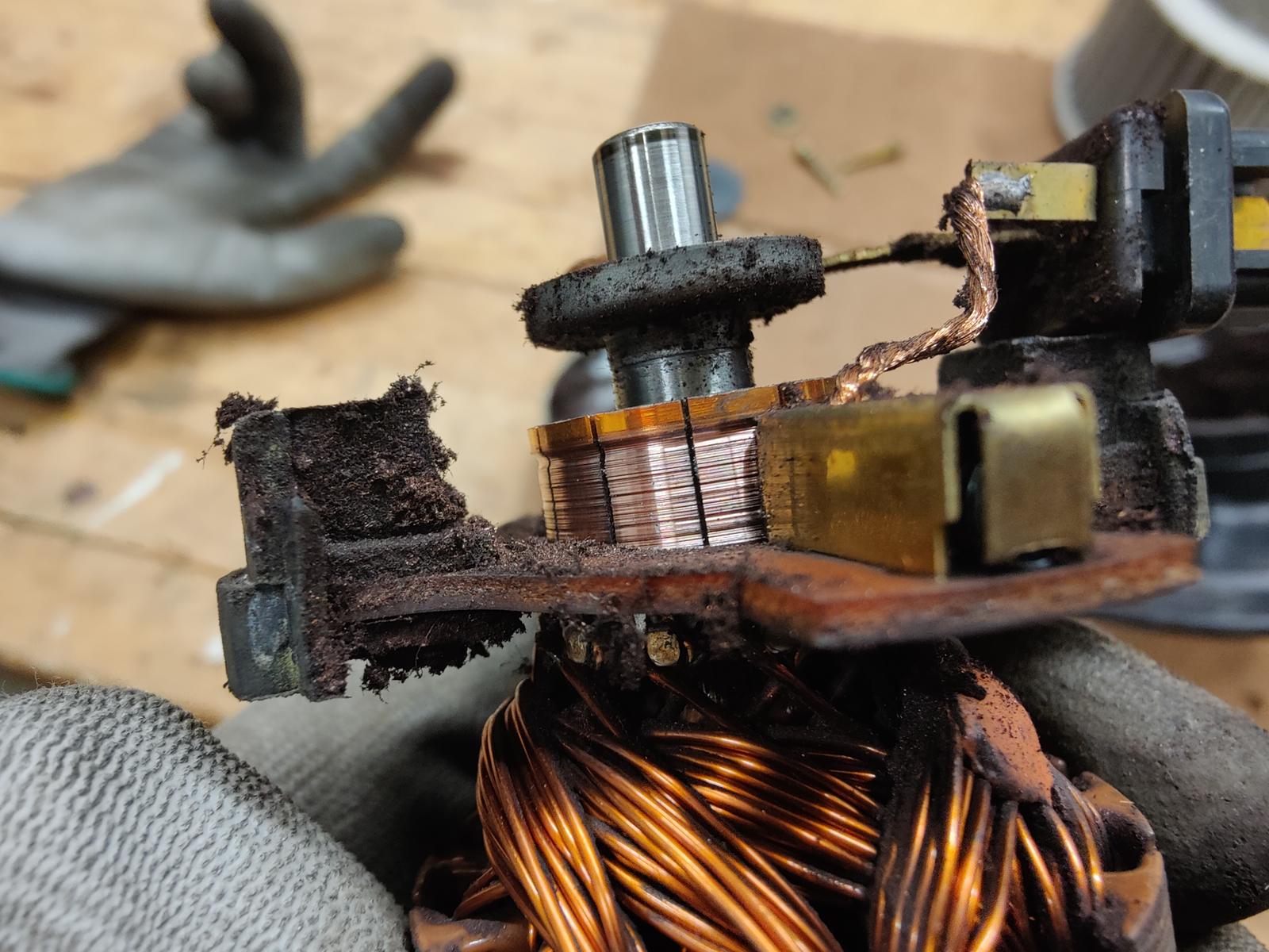 Olisit laittanu sorviin ja pyyhkäisy pinnan sileäksi kun varaa näyttää olevan. Kaikista tärkein juttu tuossa kollektorissa on varmistaa, että segmenttien välit eivät ole oikosulussa (kuparimoskaa). Jos oikosulkuja alkaa muodostumaan moottorin virta kasvaa julmasti ja teho putoaa. Virran kasvun seurauksena hiilet sanoo morjens aika nopeasti. Kannattaa putsata kunnolla.