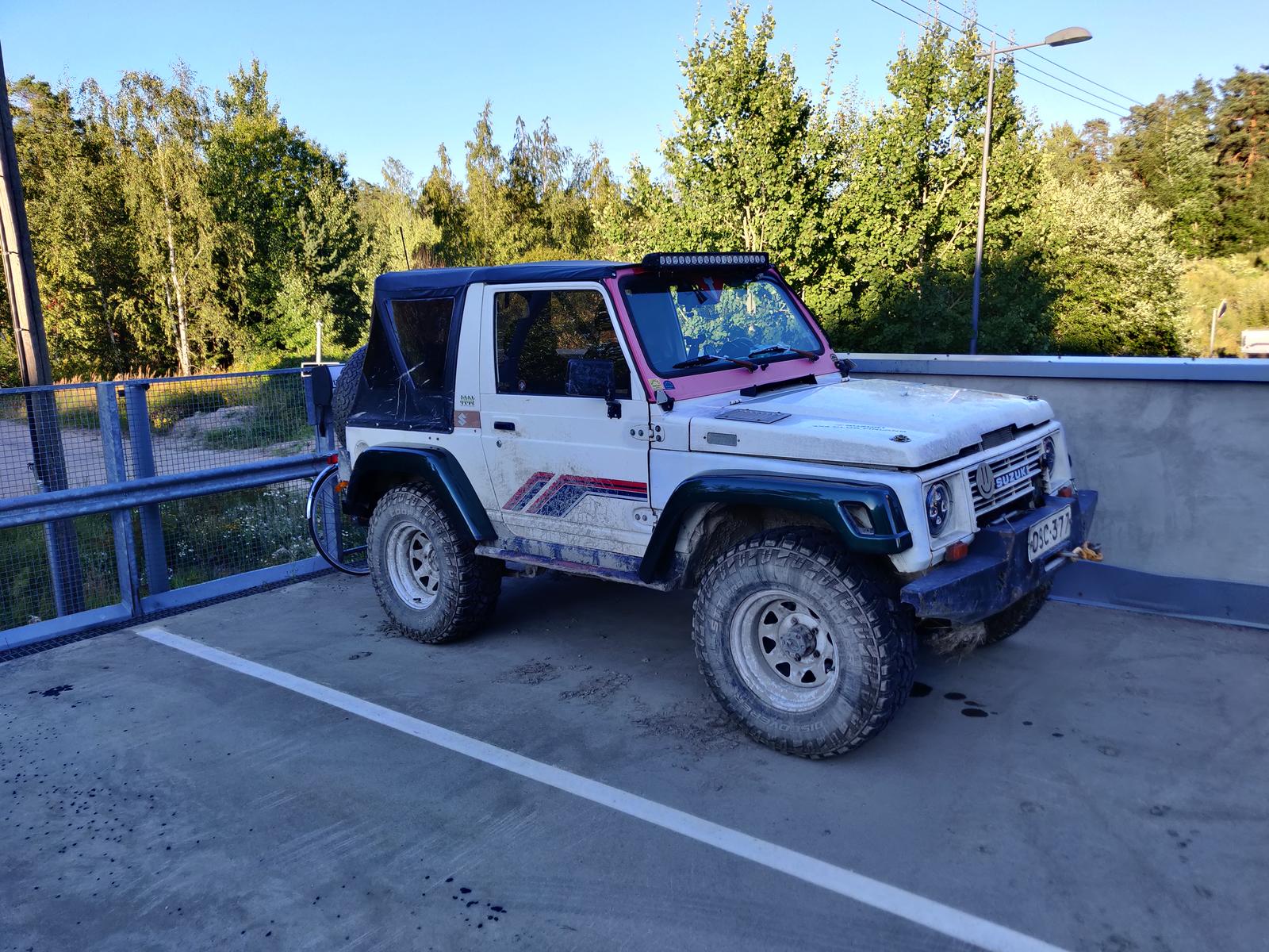 Takapuskuri oli ihan rusetilla ja sattui sopiva aihio kohdalle. Ihan bolt on se ei kuitenkaan ollut, kun puskurin tekijällä oli autossa korinkorotus ja omaan ei kiinnikkeet sellaisenaan sopinut. piti rälläkkää näyttää, mutta asentui lopulta hyvin paikalleen. Pekisterikilvelle ja sen valolle pitää vielä taikoa paikka. noi ammottavat aukot voisi täyttää valoilla. Hämmentävää, miten näennäisesti pieni juttu voi tehdä valtavan eron: Nyt pakoputken pää on käännetty alas, ei tartte väylävauhdissa korvatulppia ja kabiiniin tulevan käihän määrä romahti olemattomaksi, erityisesti jos ikkunat on raollaan. Nää paljon parjatut nurmikonreunusmuovista väännetyt levikkeet löysi lopullisen sijoituspaikkansa. Väliaikainen patentti tämäkin siis alkujaan oli ![]() Tällä saa kahden automerkin leirissä paljon mielipahaa ![]() Vannoutunut Jeep-mies Tuukka (nimi muutettu) myi pahaa aavistamattomana hyvät levikkeet mulle. Ihan siisti, kun vähän lyhenteli reunoista. Vähän liian kiiltävät, mutta muovilaatu on ihan paras näissä. Sitkeä ja joustava materiaali.