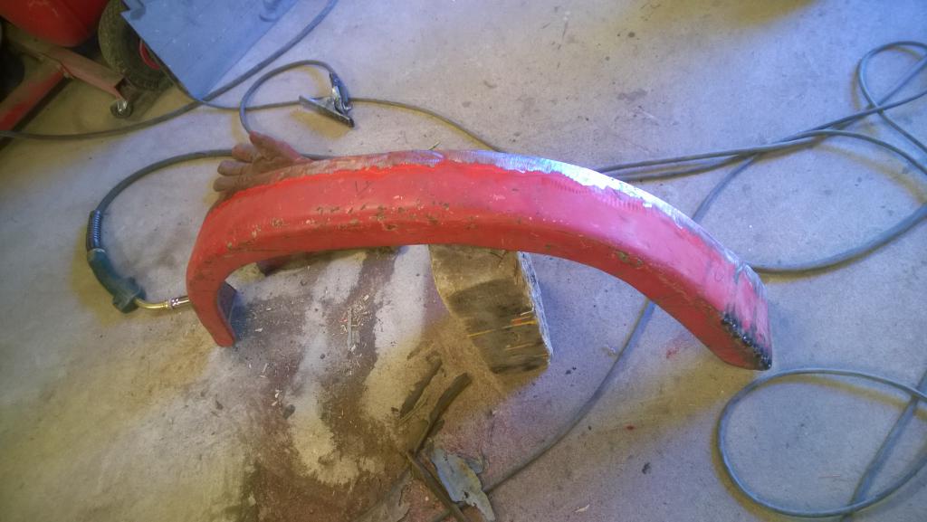 Vielä pitäs lokasuojat hitsata läpi, hioa pellille, oikoa mitä viittii, ruiskata happomaali, ruiskata pohjamaali, tekasta pohjat,