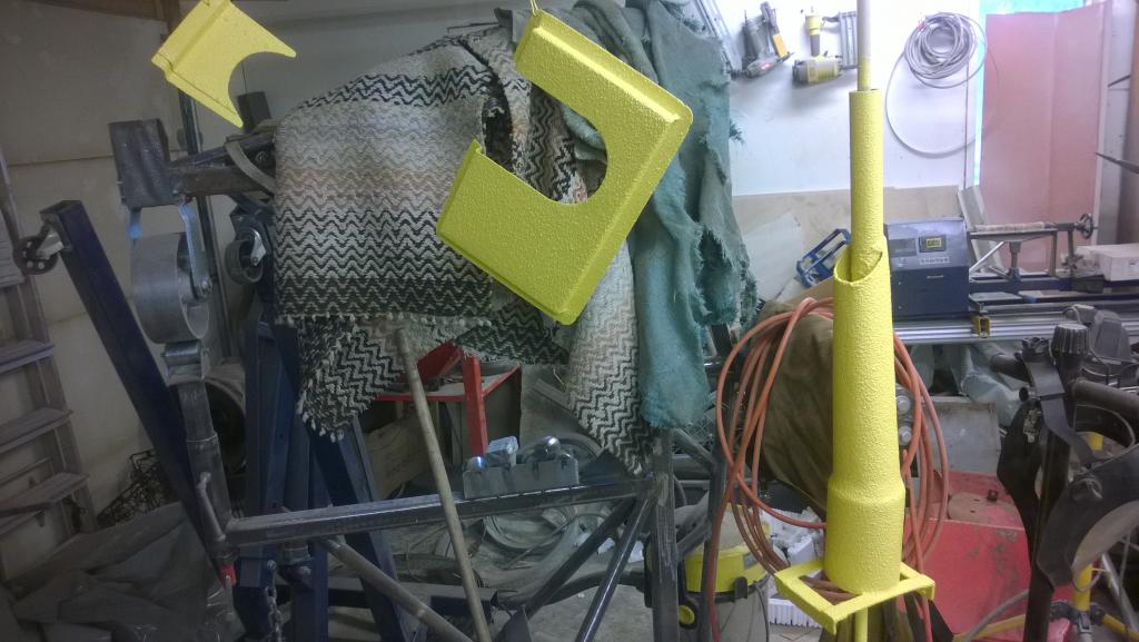 Aamusta piti hioa pari osaa ja ruiskata ne Raptorilla. Nyt olis rattiakselin suojaputki, kuskin lattian peitepellit ja laturin
