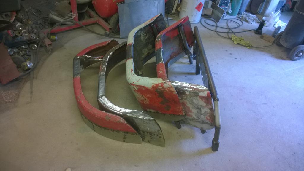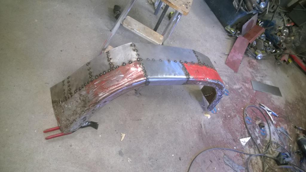 peitepelti valmiita. Kunhan kuivuvat niin pääsee pulttaamaan paikoilleen. Sitten sovitin etulokasuojat paikoilleen ja rälläköin ne lopulliseen muotoonsa. Katotaan miten nuo toimii eli kuinka rutussa ovat joka reissun jäljiltä Samoten tuli tekastua kiinnikkeet takalokareille. Luovuin suunnitelmasta kiinnittää ne akseleihin, kiinnikkeistäolis tullu melkonen härdelli... Vielä pitäs lokasuojat hitsata läpi, hioa pellille, oikoa mitä viittii, ruiskata happomaali, ruiskata pohjamaali, tekasta pohjat, ruiskata pohjamaali uudestaan, massat alapintaan ja pintamaali päälle. Eli vielä ottaa vähän aikaa ennen kuin pääsee pulttaamaan nuo paikoilleen. |