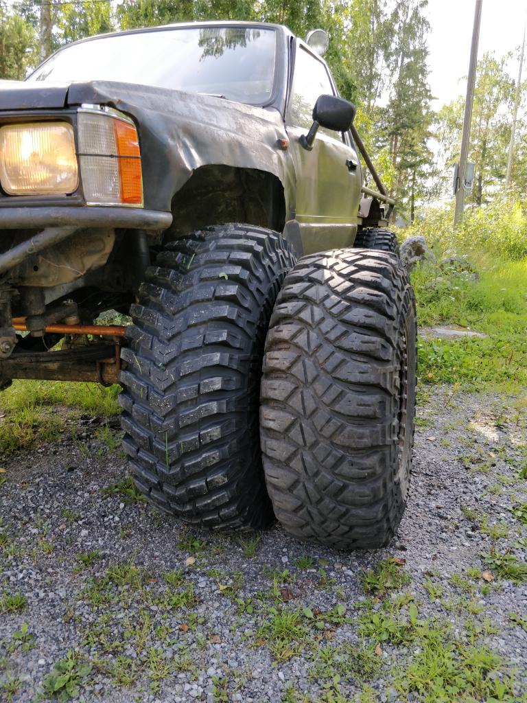 Metsään ei ole vielä päästy mutta 50km maantiesiirtymä tuli ajettua ja kyllä täytyy kehua. Ilman tasapainotusta, beadlock vanteilla niin rullaa komeasti 80kmh eikä voblaa alemmassakaan nopeudessa. Auton kulkemiseen eivät vaikuttaneet kauheasti. Kulumisesta en tiedä sanoa muuta kuin että tuolla matkalla ei lähtenyt edes karvat renkaista.
