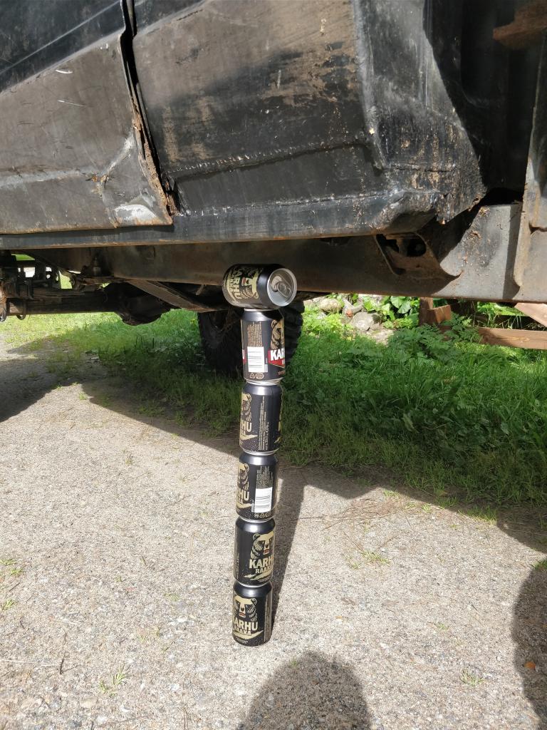 Korjauslista vaan tuntuu kasvavan sitä mukaa kun jotain saa laitettua. Alkuun suunnitelma oli jouset ja renkaat, mutta lista tuntuu kasvavan aina kun jotain tekee eteenpäin. Kytkin, välitykset, traction bar, kääntöpää, eturenkaille tilaa ja jotain hipostelua tarvitsisi tehdä ennen seuraavia ajoja. Jossain kohtaa sisälle säiltystilaa, putkea hytin ympärille, lavaa uusiksi yms yms. Vararengaskin pitäisi jostain saada.