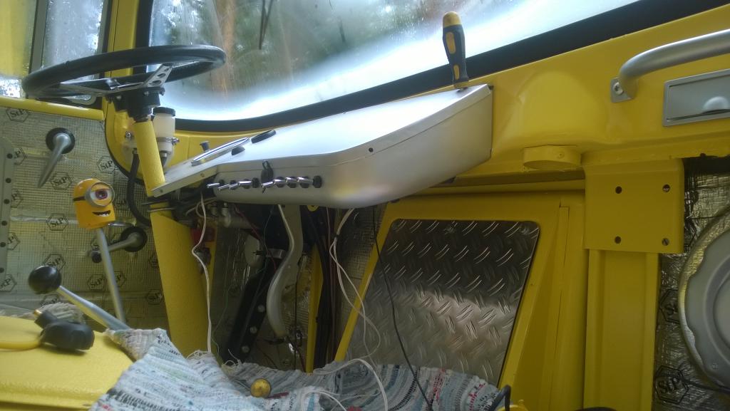 adapterin jolla Bilteman sähköinen pyyhkijänmoottori istuu orkkis alipaineohjatun moottorin paikalle. Hieman piti ettiä oikeata asentoa, jne. mutta nyt tuntus pyyhkivän ja mahtuu hyvin kojelaudan alle Vielä tarttee ostaa uudet sulat... Nyt ei minkään pitäs enää estää kojelaudan asennusta ja sähköhommia... |