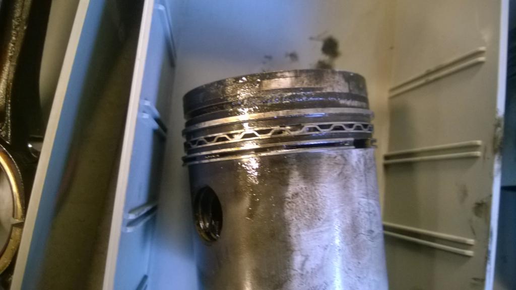 Jokaisesta männästä vähintään yks rengas palasina, yhdestä puuttuu tuo pala ja yks mäntä halkeamassa Ilmeisesti aika vaihtaa nuo pikku hiljaa Mihinkähän tuon yhden männän ylin rengas on kadonnut melkein kokonaan??? Laakerit näytti olevan ok kun ei ollu kuparia kulunut näkösälle. Pitänee tässä jossain vaiheessa tilata uuden männät ja renkaat. Lienee vakiokokoa koska tuskin tähän on kukaan koneremppaa tehny, koskaan. |