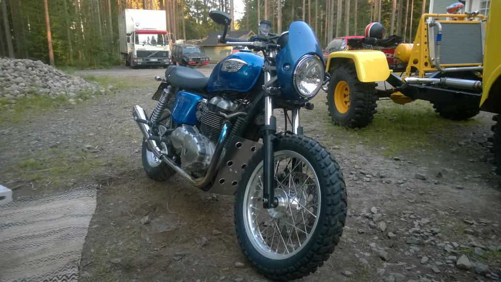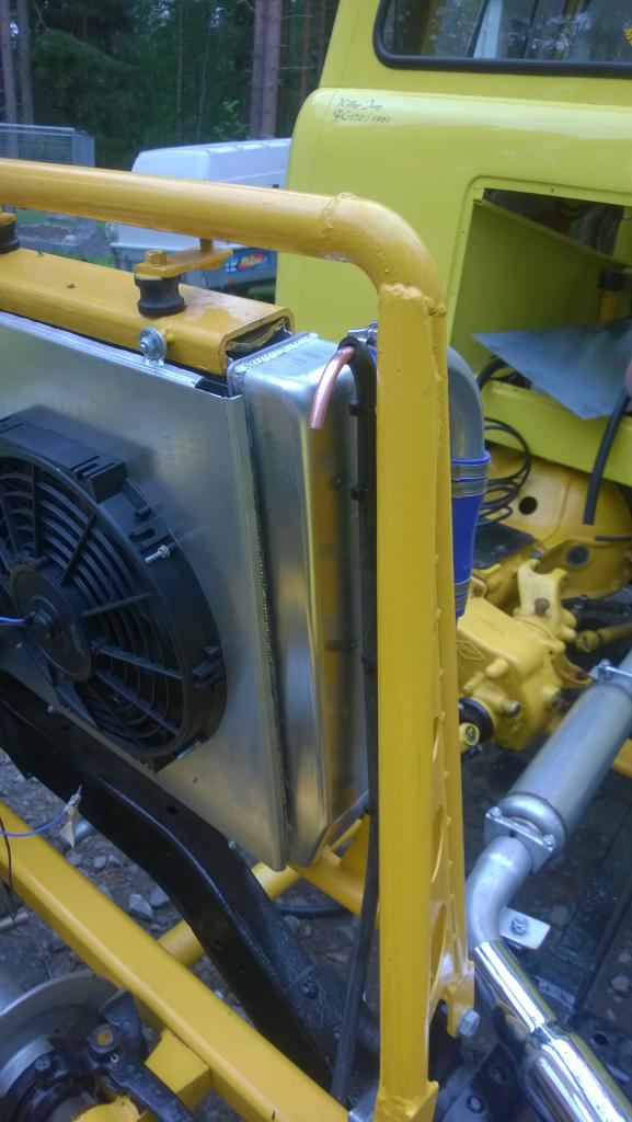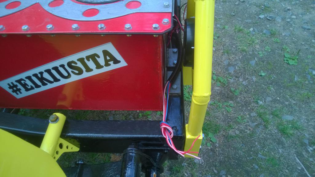 Käsijarru pitäs nyt pelata, uus vaijeri asennettu ja nippu vanhoja ja ite tehtyjä osia asennettu. Ei tarttis kuin säätää enää. Mittarin vaijeri on paikoillaan, samoten laturin sähköton tehty. Laturista puuttuu nyt enää lyhyempi remmi. Työvalon johdot on vedetty katon läpi läpivientikumilla jonka myös yritin liimata paikoilleen, saa nähä pitääkö vettä ![]() Nyt illasta hain myös postista puuhapaketin, katotaan kauanko malttaa tehdä noita sivuprojekteja ennen kuin on hoonaamassa pytyt ja konetta niputtamassa uusilla osilla ![]() Yksi sivuprojekteista oli tekasta kaverin pyörään panssari köykämiinistä: Sitten on menossa auto/varastokatoksen rakentaminen, jne. Kyllä tämä vielä tästä