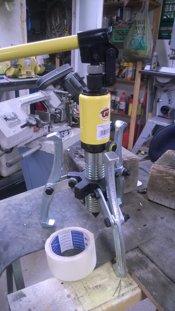 ja lämppärinpuhallin (0-low-high) toimii nyt. Posti toi uudet jarrunestesäiliöt, nyt pitää valita mustan ja alumiinin välillä, tekasta teline noille ja korvata nuo wilwoodin muoviromut noilla. Tuli myös tollanen ulosvetäjä hommattua, saa nähä miten pelaa. Ajatus oli että tuo pysys paremmin paikoillaan kun ei tule kiristäessä sitä vääntävää liikettä tuohon. Saa nähä. Maanantaina pitäs tulle ridge reameri niin pääsee tuon koneen kimppuun taas. Siihen tehdään sähköjä pikku hiljaa... |