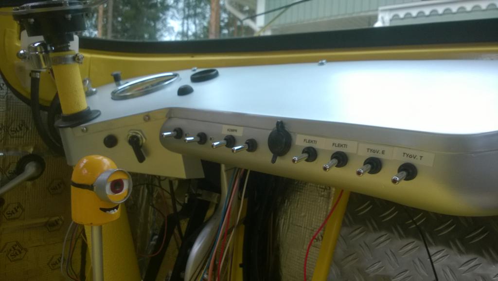 Hyvin hiljaa etenee mutta kuitenkin. Kattokonsolin kaikki napit ja sähköt olis paikoillaan ja kytkettynä. Eli kiertovesipumppu