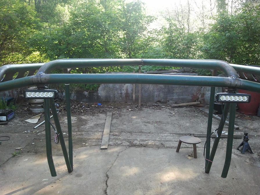 Tässä levyt reijitettynä ja hitsattuna Jonkun verran tuli kaaria hiottua ennen maalausta Yläprofiili Katolla täytyy maasturissa olla valot. Eteen laittelin pienet ledit ja taakse on samanmoiset kanssa. |