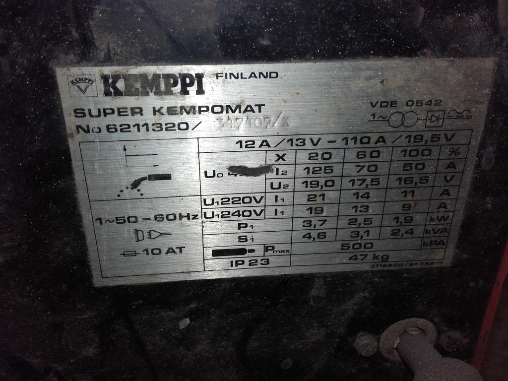| Myyty Kemppi Super Kempomat MIG-hitsauskone | MikZ | O/M/V Muut | 9 | 02.08.2010 18:47 |