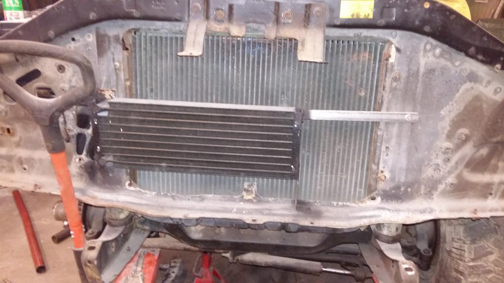 Automaatille virittelin lisäjäähdytystä, kennossa pitäisi riittää pinta-ala. Taustalla vielä sähköflekti tarvittaessa puhkumaan. Melkoinen määrä edellisten omistajien sähkövirityksiä tullut poistettua. Releet ja sulakkeet eivät ilmeisesti ole olleet tuttuja. Suoria johdotuksia akulta katkaisijan kautta laitteille. Ja tietty useita erivärisiä ja paksuisia johtoja abikoilla peräkkäin. Auto olikin nyt ajokunnossa niin sain vihdoin käännettyä sen tallissa toisinpäin. Lava on aavistuksen hapan, vielä mietin koitanko tuon ehjätä vai laitanko flatbedin. Lava oli kiinni kahdeksalla pultilla joista kahdeksan katkesi melko helposti. Liekö ruosteisia heikkoja pultteja tai sit oon vaan niin vahva. Runko vaikuttaa edelleen terveeltä. Ainoastaan (toistaiseksi) takaiskarien kiinnitykset joudun tekemän uusiksi. Joku ne on näköjään kertaalleen hitsannut, mutta laitetaan nyt kunnolla =)