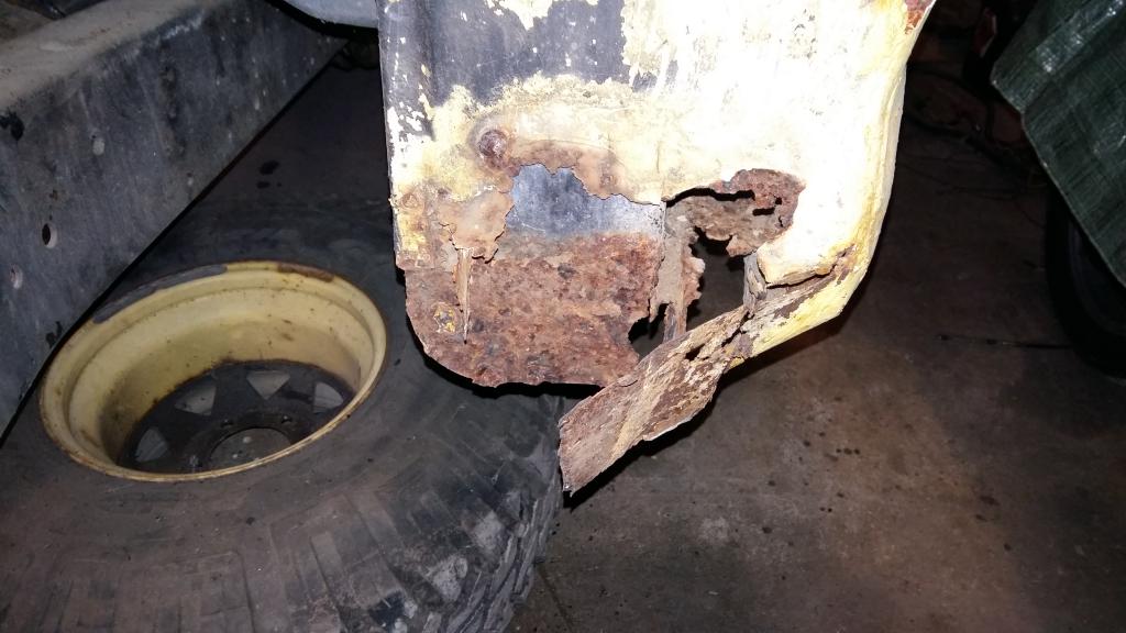 Korin alakulmassa oli melkoisen kokoinen reikä peitetty erinäisillä peltilapuilla jotka osin hitsattu ja osin pakkeloitu kiinni. Iskarin yläpään kohdalla oli rungossa ruostunut reikä, päällä ohkanen pellin pala paikoitellen hitsattu ja toiselta puolelta oikein reilusti hitsattu ja moneen kertaan päällekkäin. Mitähän tuolta vielä löytyy kun alkaa huonoja kohtia poistamaan...