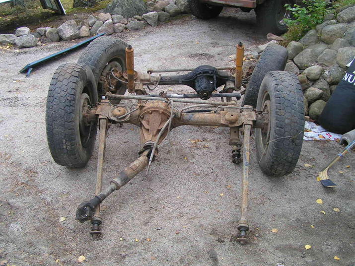 Koneeksi piti ensin tulla tuo Baijerilainen aluvinkkeli, mutta siihen olisi sen verran pitänyt haalia osaa (laatikkoa,starttia ym..) , että päätin hankkia/uhrata 1kpl Vania, josta viikon koeajelun jälkeen irroitettiin 350 ruuttamoottori Hiluxin voimanlähteeksi. Toinen hankintahan oli tuo lavaportto josta ensin ostin 2 akselia ja sittemmin jouduin ostamaan koko rotiskon pihaa kaunistamaan.