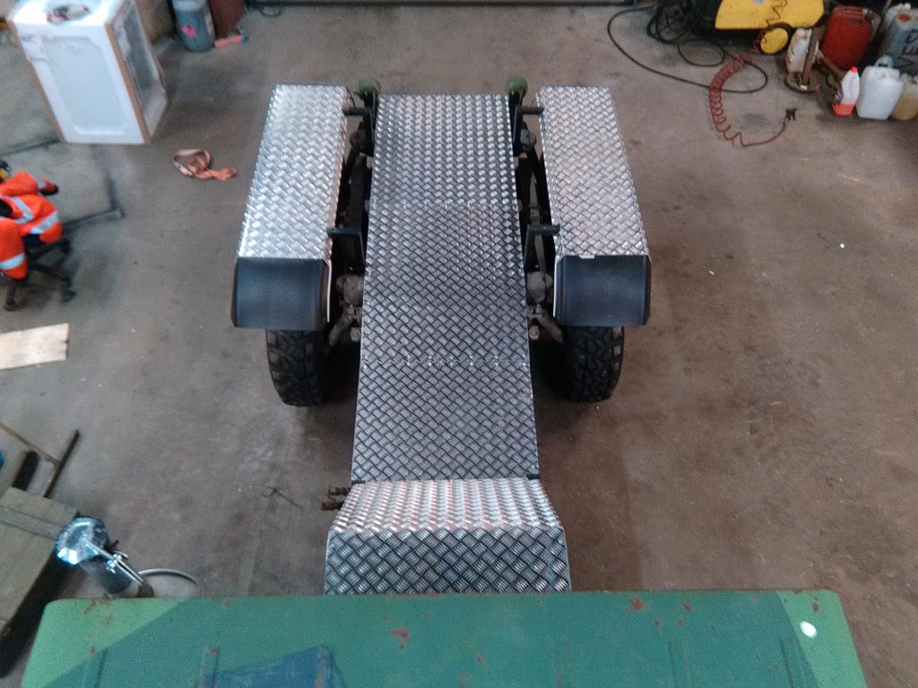 Kun ei tuollaista perus pellistä taitettua juhtaa uskalla lähteä kiskomaan metsään patrollin perässä niin piti tehdä sitten itse kärry joka kestää. 31 10.5 renkailla