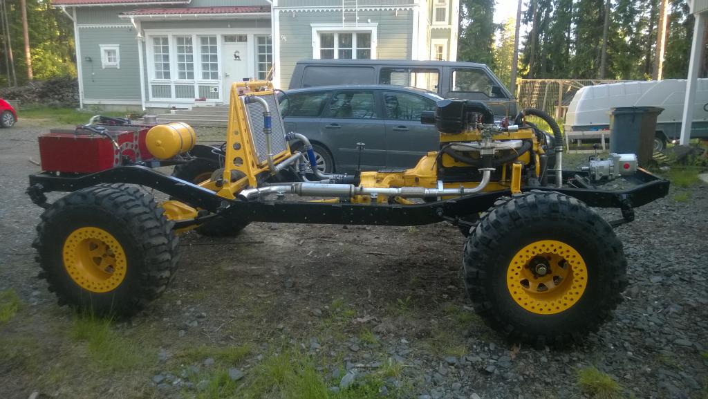 Jäähytyksen muutoksessa ajatus oli tekasta tuohon sähkösen pumpun rinnalle suora ohitus eli oma mekaaninen pumppu saa kierrättää sitä kautta ja jos/kun lisätarvetta tulee rupeaa sähkönen möyrimään tuossa omassa haarassa. Ameriikan pojat on tällasia versiota tehneet, meinaavat että pelaa hyvin. Samoten laitan t-haarat ja hanat tuonne lämppärinletkuihin katon rajaan. Pitäs olla helpompi täyttää ja ilmata kun saa ylimmästä kohdasta tehdä molemmat. Pikku hiljaa ruvennu tuota hytikkaa suunnittelemaan kunnolla, katotaan jos sais selotuksen suunnitelmista kuvienkera tekastua tässä vielä tänään... |