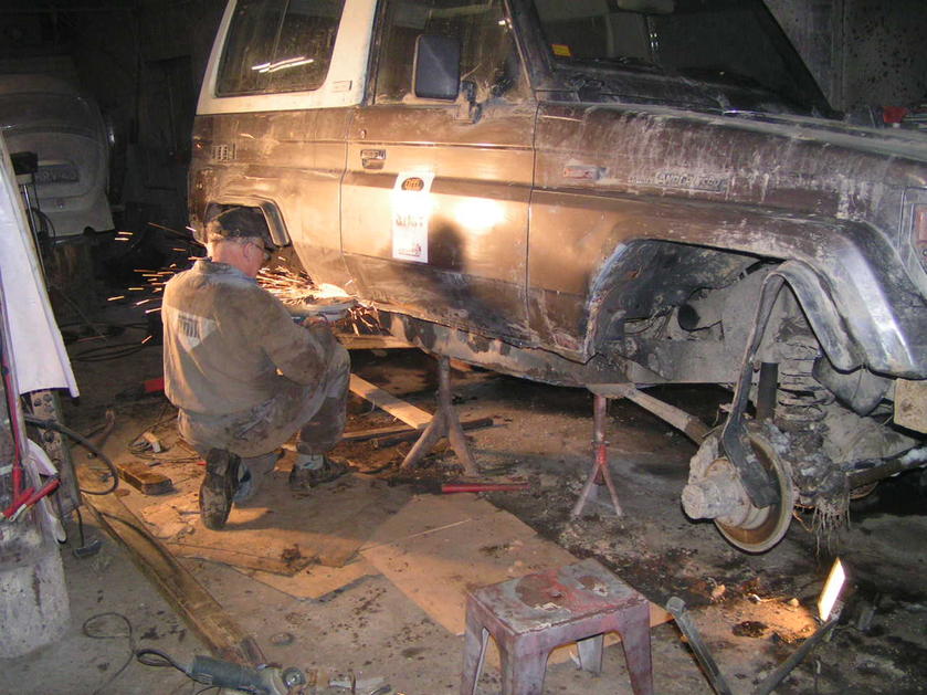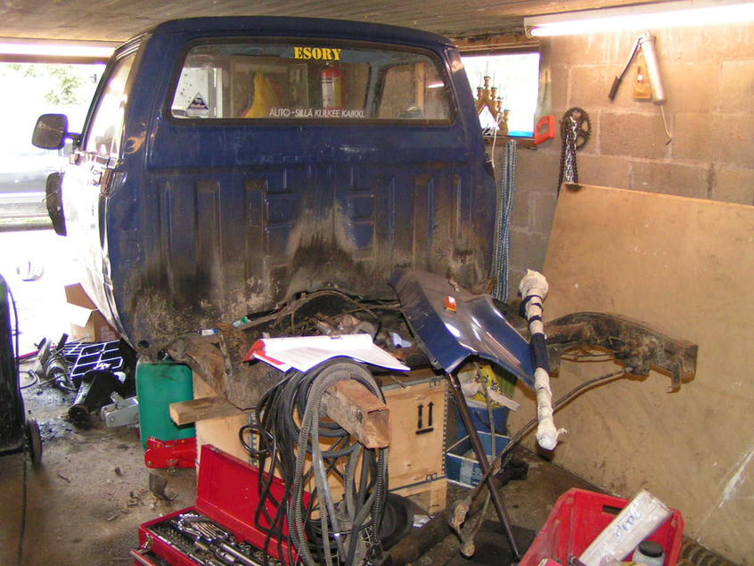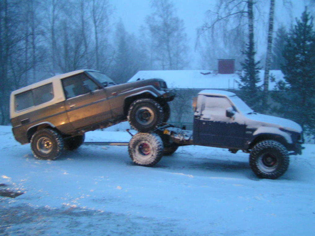 Välissä rakenneltiin tuota läjää, joka sittemmin päätyi kiertoon, sitten Valppia, joka makaa konevammaisena appiukon pihalla. Seuraavaksi oli vuorossa Bertta, johon en saanut senkään vertaa aikaiseksi ja päätyi kiertoon sekin. Moottoripyöriäkin on pitänyt välillä rakennella. Runkkupalleroon sentään sain jotain näkyvää aikaiseksi. http://forums.offipalsta.com/showthr...=runkkupallero Nyt sitten käyttöautona HJ61 jota eritetään pitää kasassa kevyen safaroinnin ja suomalaisten maantieolosuhteiden kuluttavaa vaikutusta vastaan. HillCruiseri on siis tallella ja viettänyt vuodesta 2009 ilman konetta/akseleita välieläkettä ja kerännyt virtaa uutta nousua varten. Jotain on sentään tapahtunut, sillä talli on vaihtunut ja osia haalittu. Koneeksi piti ensin tulla tuo Baijerilainen aluvinkkeli, mutta siihen olisi sen verran pitänyt haalia osaa (laatikkoa,starttia ym..) , että päätin hankkia/uhrata 1kpl Vania, josta viikon koeajelun jälkeen irroitettiin 350 ruuttamoottori Hiluxin voimanlähteeksi. Toinen hankintahan oli tuo lavaportto josta ensin ostin 2 akselia ja sittemmin jouduin ostamaan koko rotiskon pihaa kaunistamaan. http://forums.offipalsta.com/album.p...ictureid=98270 http://forums.offipalsta.com/album.p...ictureid=98271 Siitä siis 2-3 akselia HillCruiseriin.. Tosin sillä ajattelin ensin jonkun safarin safaroida sillä aikaa kun tuota konetta nakerretaan kiinni. Tuo nimihän viittasi alkuperäiseen suunnitelmaan naittaa läjä hiluksiin, mutta olkoon nyt sellainen, kun sellaiseksi on nimetty. Mitään kiirettähän tässä ei ole tarkoitus pitää edelleenkään, mutta josko nyt jäisi vähän paremmin aikaa askarrella kun emäntä vaihtoi työpaikkaan jossa on viikonloput vapaat ja muksutkin ovat päässeet jo vaipoista eroon..