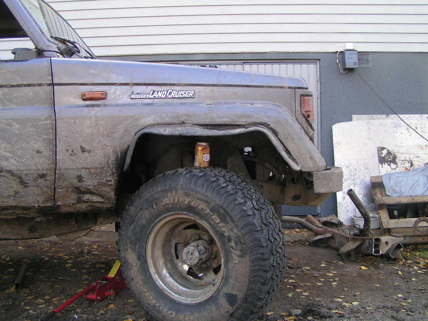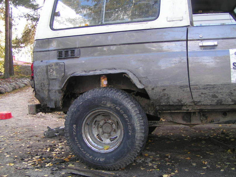 Samalla nostin takapuskinta pari tuumaa tulevia visioita varten.. edit: ja etuloksujen kaaria avarrettiin vähän takapuolelta, niin mahtuu vähän isommat pallerot kääntymään alla