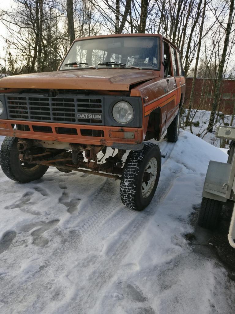 Datsun Patrol (katotaan mitä tulee...)tuli hommattua tollanen patrolli iltojen iloiksi tovi sitten, soa oli valmiina tehtynä ja sitä ollaan nyt rakennettu miten on ehitty. talliin sisälle yöksi sulamaan sulamaan seuraavana päivänä sisusta purettiin ja lattiamattojen alta löyty "yllätyksiä", ruostettahan tässä oli jalkatilat mutta muuten suht hyvässä kunnossa rungossa pari reikää ja ulkopelleiltään hyvä kuvia nyt turha laitella ruosteista enempää samalta näytti lattiat jokakohasta...pohja hitsuuteltiin ja sitten siirty ulkoruokintaan... moottorina tässä toimi volvon b30 joka sai lähtöpassit ja tilalle löyty sd33. vanha pois uus tilalle sopivasti sattu jollakin olemaan tarvetta vanhalle moottorille joten pakettiin ja kohti uutta omistajaa! auto ollut melkein parisen kuukautta joten piiiitkällä välillä rakenneltu ja kiirehän tällä ei ole, rakennetaan taas kun ehitään.