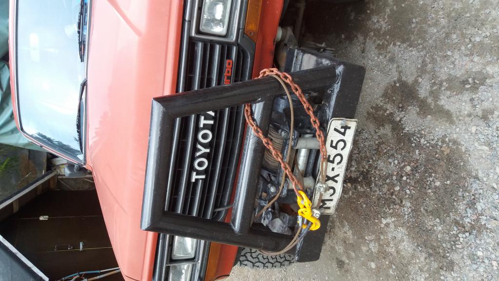 Päivitettäänpä tätä vaikka ei hirveästi ole muutoksia tullu viell.. Mut koppaa on nostettu 50mm ja etupuskuria ruvettu muuttaan "jäykemmän malliseksi" keulaan tuloo kyllä viel lisää rautaa koriksteeks että kestää törmäillä jos sikseen tuloo.. ja takapuskuri tulos uusiks jahka sais vkl aikaan sen hitsattuu paikaal..