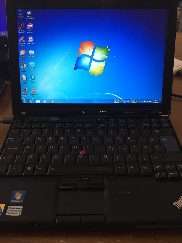 Lenovo x201 päivitystäMyyty tuollanen olis jouteni5 prossu 2,67GHz 4Gt muistia ssd kovalevy kingston 240Gt 12" näyttö webcam tehoakku 8-10h lukemii näyttää sormenjälkilukija virtalähde win7 fi hp.200€ p.0400426177 HKI Myyty