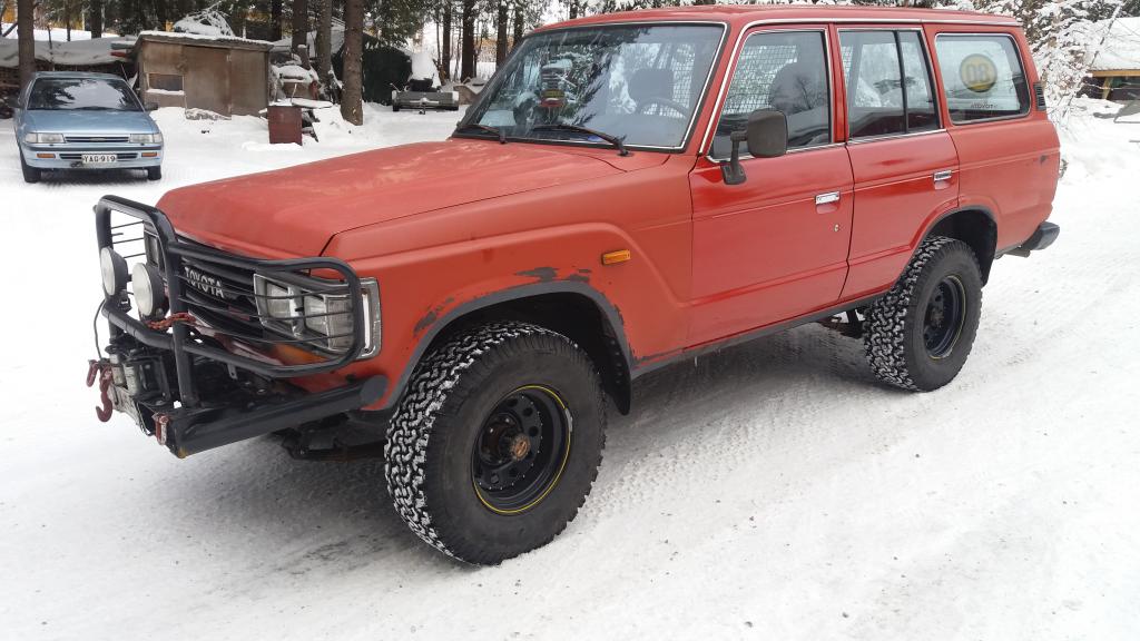 hj61elikkä tuli hommattuu tuollane ruiseri taasen kerran kun edeltäjä tuli myötyä muutama vuos sit pojes... No nyt piti olla laitettu ruiseri ett mädät on korjattu ja no hintaaki oli huomattavast enempi mitä noill yleensä on ja on ei hän tuota oo viellä sisään ajettukaa 374 mittaris taitaa koreilla nytten. toiselta omistajalta ostin nytten tuon jousitus vaihettu muutama vuos sitten ja samal iskarit ja tekniikkaa huollettu enemmänki eli teknisesti huippu yksilö mutta myyjä kehui että ei ole mätää muuta kun yhessä kohdalla näytti kohdan muut on korjannu. no siitä hän se sitten lähti "korjaukset" on korjattu hienoostti...ja ensimmäisessa kuvassa itseki ihmetteli et miten on "lyyhähtänee olone kuitenki keula ja perse aika samoill korkeuksill oli.. no syyki löyty takaa löyty nii piruust ylimääräst painoo kaikki turha paino takaa pois nii johan perse nous ylöös.. Sit keula jäi noin 4cm jälkee.. no osti uudet pakat ei auttaan nii tein toise ratkasun nii jo rupes nousee takas ryhtiin ja sitten muutamia kohtii oli "pakkelilla" vaan peitetty piiloon ett hienoo tä nyky korjuu ei hitsata.. vaan pakkelilla piiloo kaikki.. tai irto pellil vaa liimaal kiinni ja mädät sinne alle vaan hienoa no laitettaas kuvia mätä kohist...