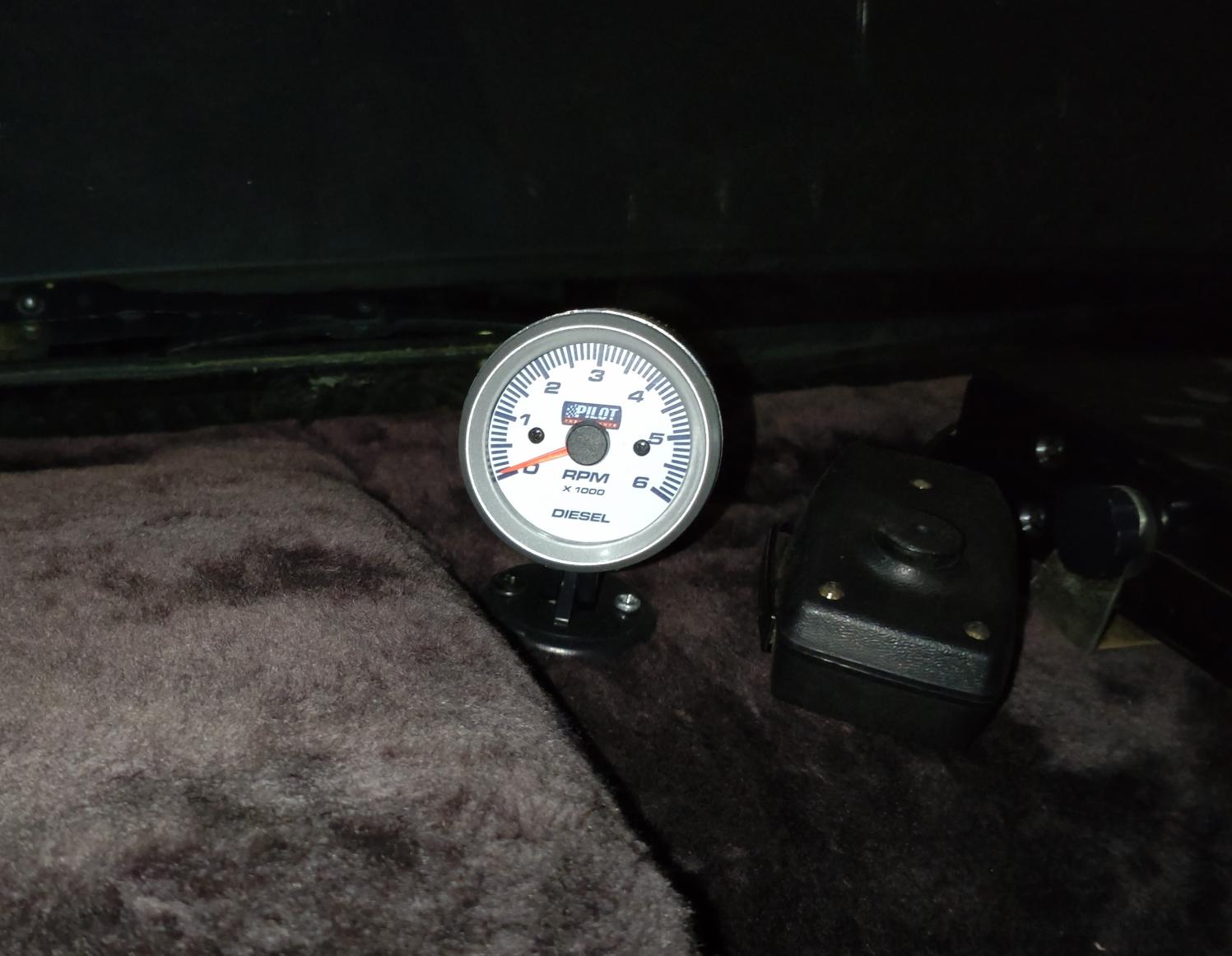 Myös kierroslukumittari tuli asennettua pari vuotta sitten. Otin laturin pöydälle ja liitin käämiin johdon, jonka vein mittarille. Tuo punainen johto tuossa. Laturi lienee joku yleismalli. Viritys tuntuu toimivan.