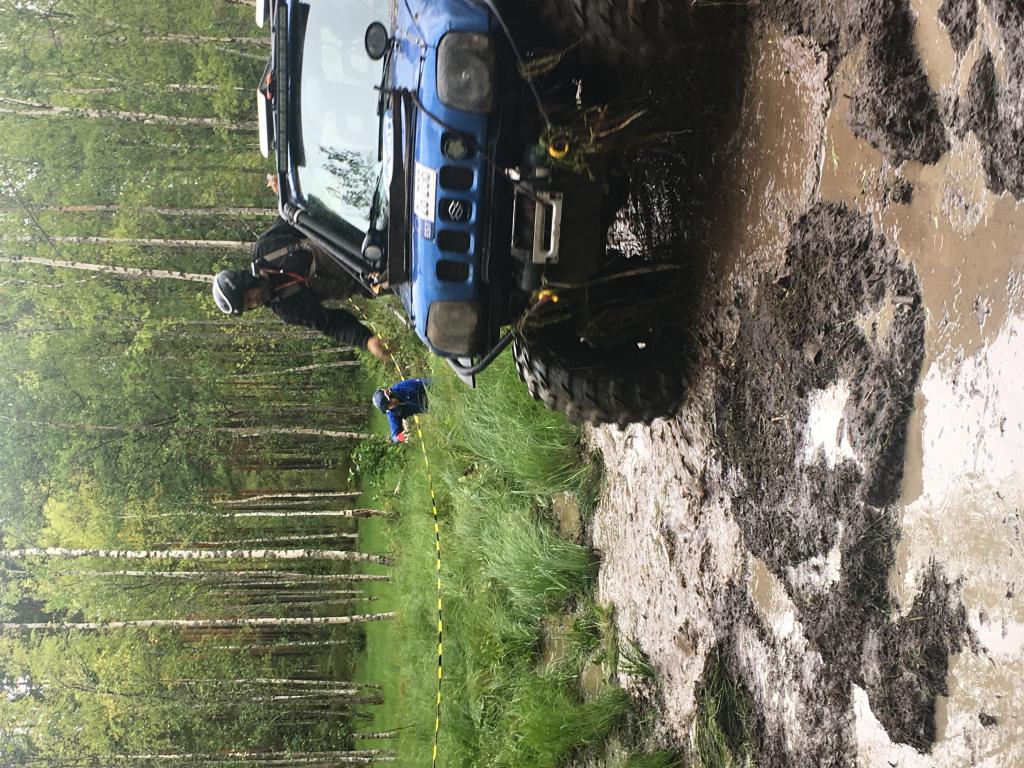 Odotettu "ilman takavinssiä ollaan kusessa" -tilannekin saatiin lopulta aikaiseksi ja jäätiin muitten armoille. Odoteltiin siinä jotain autoa saapuvaksi, että saataisiin perä nypättyä vähän sivulle. Olikohan Worry 51, jotka urheasti halusivat auttaa mönkijöillä. Saatiinkin perää hiukan siirtymään, mutta valitettavasti hajotettiin samalla vinssinaru mönkkäristä - kiitos ja anteeksi! Onneksi Temmitiimi - jota oltiin jo autettu aiemmin työkalulainalla - saapui paikalle ja veti meidän pois pinteestä. Samaisen tiimin kanssa oli pientä yhteistyötä jo eräällä aiemmallakin rastilla. Kiitos.