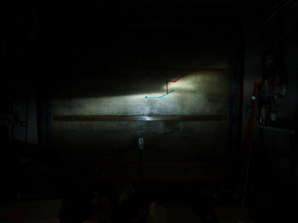 amatyyrin innoittamana päätin kokeilla alla näkyvällä H4 LED polttimolla ja muutamalla erilaisella H4 valaisimella seinäkuviota, maantielle ei nyt ollut mahdollisuutta mennä.