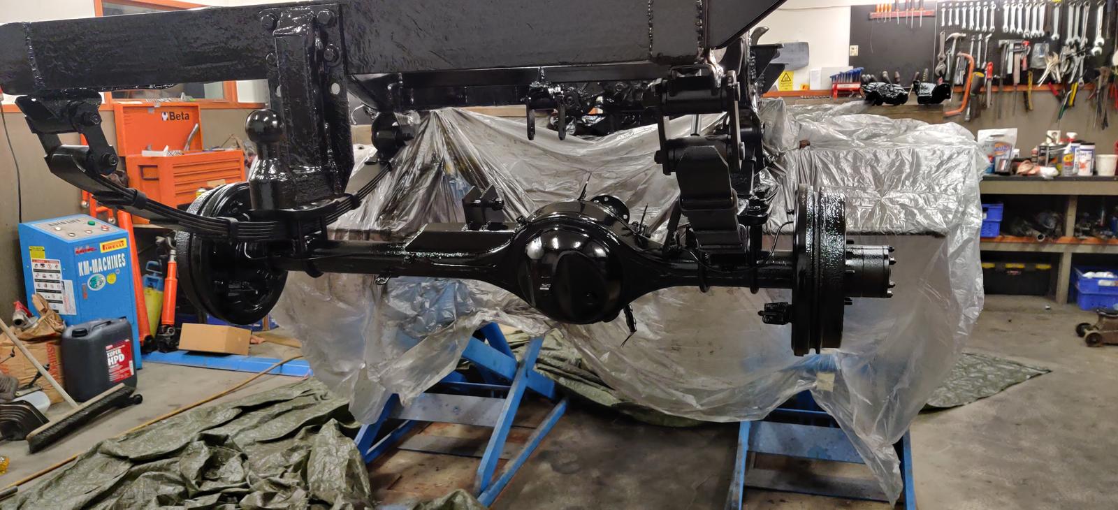 Jaahas koppa on saatu nostettua päälle ja väliin jotkut kuorma-auton iskarien yläpään kumit.