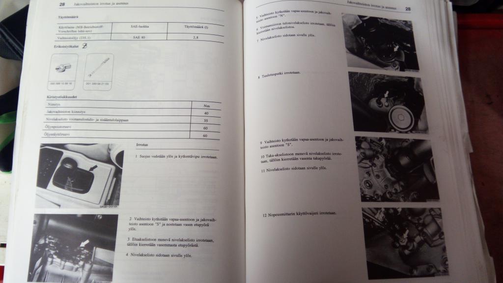 Hyvin menee remontit. Vaihtelin eteen jarrulevyt ja palat, taaksen jousen (kiitos Pee!) Mutta, abs merkkivalo syttyi. Hätäpäissäni arvelin että anturivikaa ja hommasin eteen molemmat anturin, käytettynä. Vaan eipä auttanu. Nyt kun abs-katkaisemesta ottaa absit pois, merkkivalo sammuu?? Toinen askare on se keskilukko, ei kytke, ei. Rupesin aukomaan siitä jakolaatikon kylestä sitä kytkentälaatikkoa, mutta se rupesi valamaan öljyjä pihalle. Kuuluulohan tehdä niin?