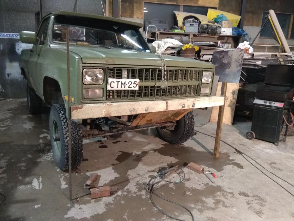eiköhän tästä pikkuhiljaa ala tulemaan silmää miellyttävä. Tähän tulee vielä CUCV tyylinen risumaski jonka voi kääntää huoltotasoksi.Ja onhan muuten perkeleen hyviä puikkoja nuo Suprat! Oon tuolla vanhalla invertterillä hitsannu Esabin 48 ja jotain vastaavia halppis puikkoja ja juma että vituttaa kun ei ne halua syttyä ja koko ajan tarttuu kiinnii. Ei mitään toivoa että yhdellä kädellä pystyis heppaileen. Mutta nuo Suprat.. Niinku jollain kahden tonnin Kempillä hitsais. Ei mitään ongelmia syttyä. Eikä paljon kiinnosta onko putken päällä ruostetta, maalia, pakkelia tai SEMENTTIÄ! Kiinni tarttuu mukisematta Tietty putsataan sitten ku hitsataan, mutta mallailuvaiheessa ihan nättiä kun saa nopeesti hepin.