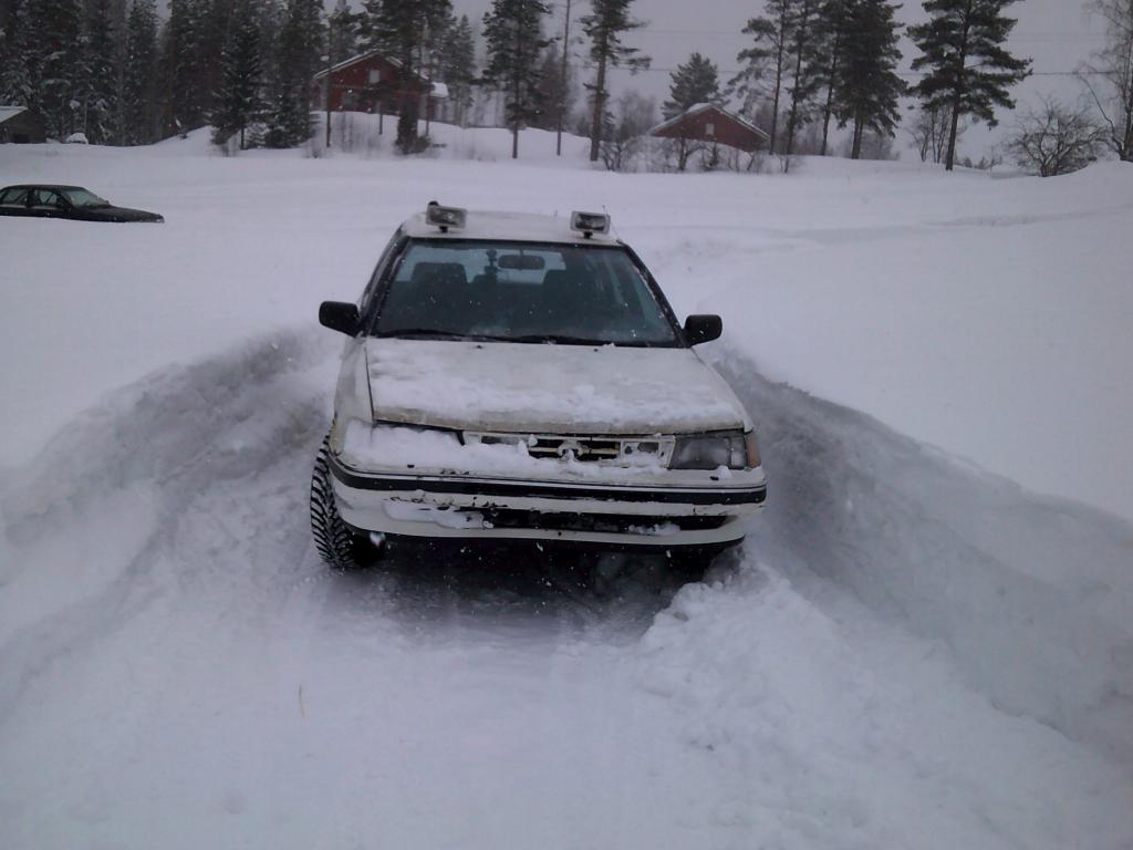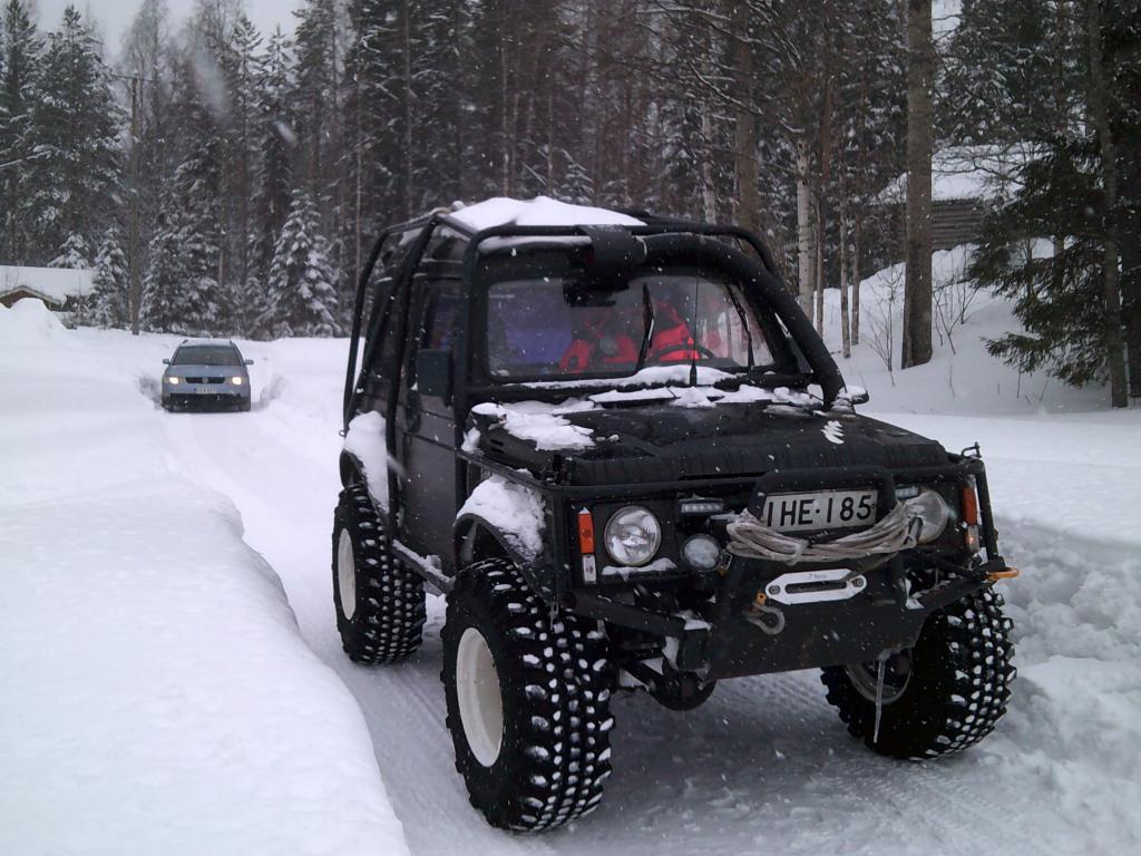 Jäi taas viimetippaan ja Pajero syvällä hangessa,muttei auta kun kaivaa esiin ja ilmaa renkaisiin,ja eikun mukaan matkaan.