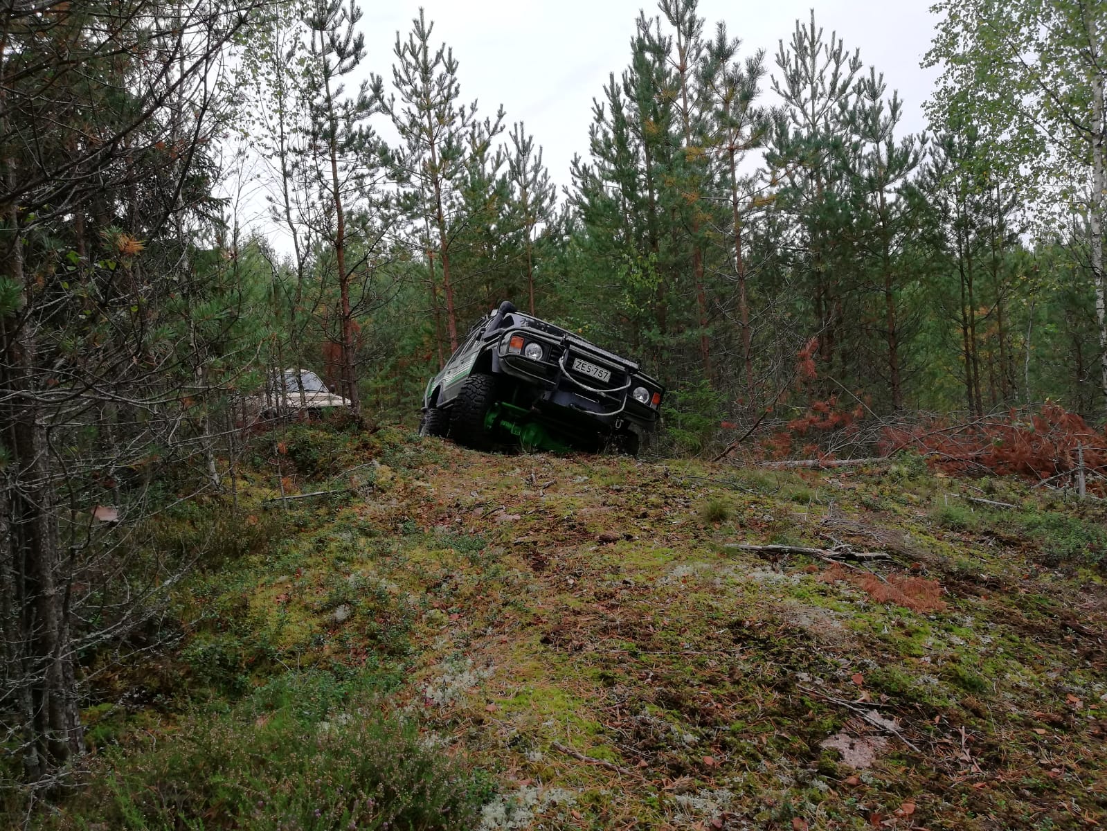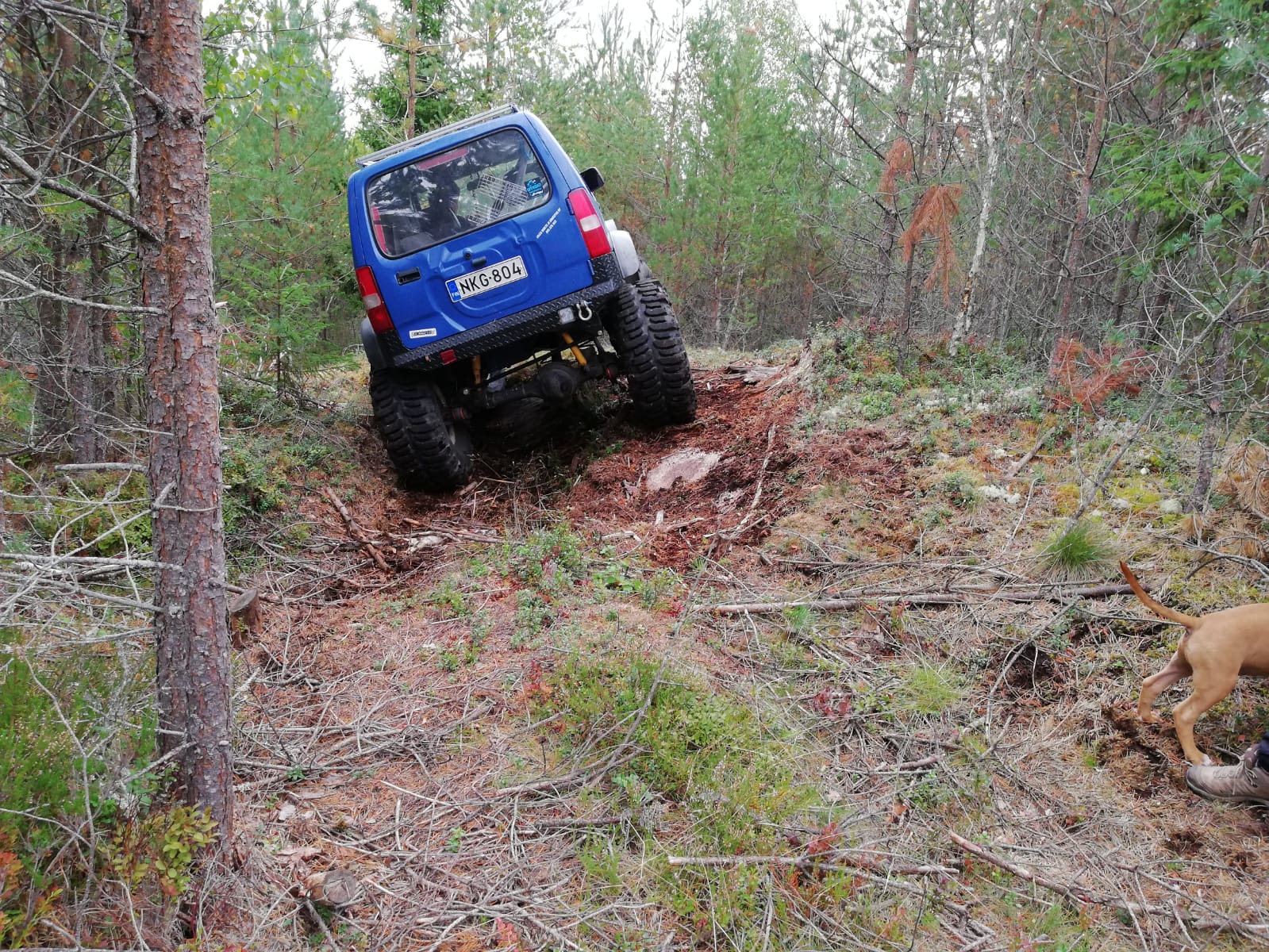 Sitten melkein ikinä tekniikka murheita nähnyt range roveri ajoi ilmeisesti käpyyn tai puusta pudonneeseen oksaan ja renkaat alkoi harottaa sen verran että kumosivat toistensa kääntymis efektin.