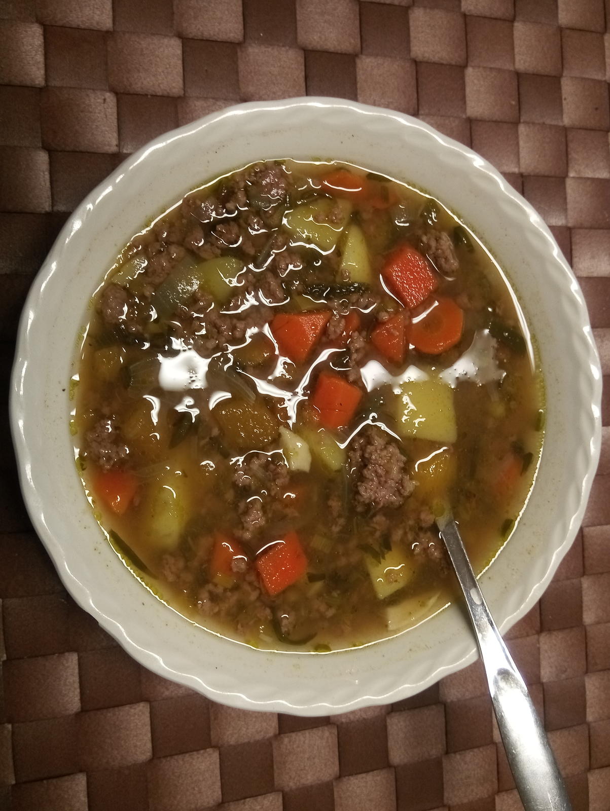 ![]() mm. vasan paistista jauhelihaa oli pakastimessa ja siitä sitten eilen tehtailin riistakeiton. Tummaa saaristolaisleipää ja minikurkkuja vähän sivuun .Ihanhan tosta tuli syötävää vaikka itse tein.