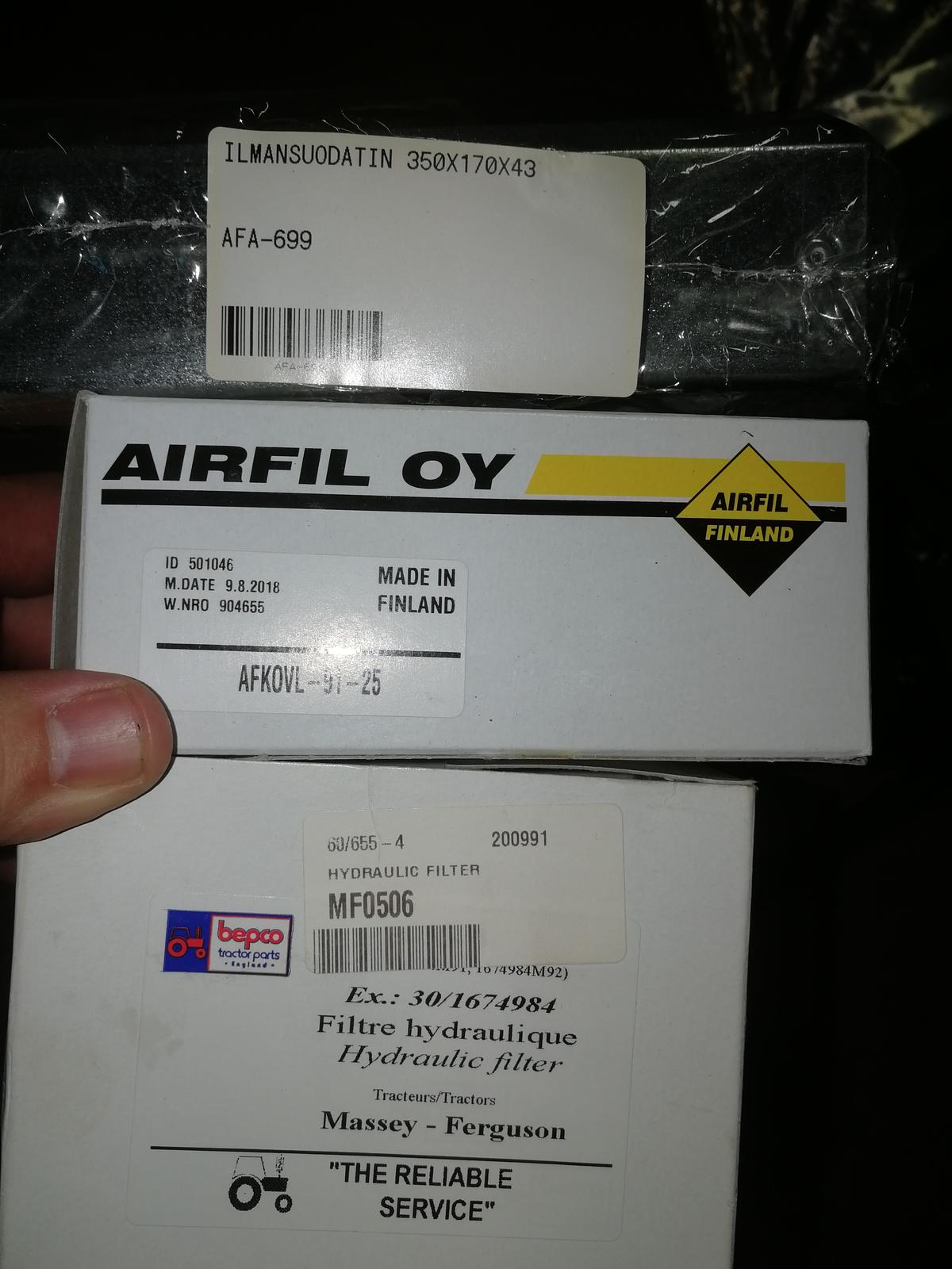 Suodattimien mukana ei tullut O-renkaita. O-rengaiden koot nään kuiteista mitä olen ostanut hydrauliikka liikkeestä. Valitettavasti näiden sijainteja en pysty enää muistamaan. Osa näistä O-rengaista oli öljyn tyhjennystulppiin