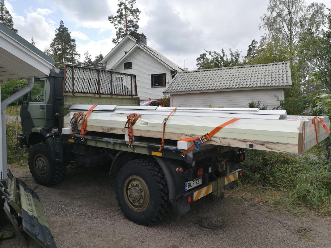 Mulla Ivecossa on teräs kehikko johon siäpuolelta liimattu seinä- ja kattolevyt. Materiaali mulla oli paljon kevyempi vain 20mm styrox, kattolevyssä oli sisäpuolella 6mm vaneri ja pinnoissa lasikuitu seinälevyissä oli 4mm vaneri. Uuden teen muuten samoin mutta styroxin vaihdan uretaaniin. Aika märkää oli paikoin styrox vaikka osa syynä oli varmaan palovaurio korissa.