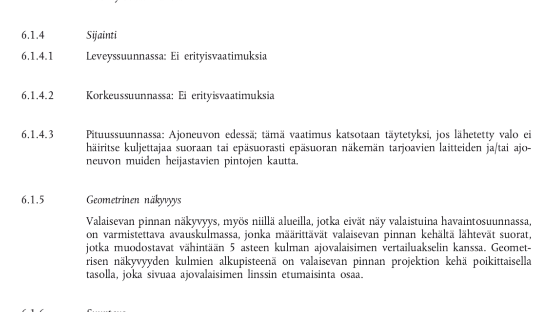 Vaikka 6.1.2 kertoo että kaukovaloja kaksi tai neljä kappaletta eikä mainita paria, niin 6.1.7.2 määrää että "Kaukovalaisimet voidaan kytkeä päälle joko yhtäaikaisesti tai pareittain."